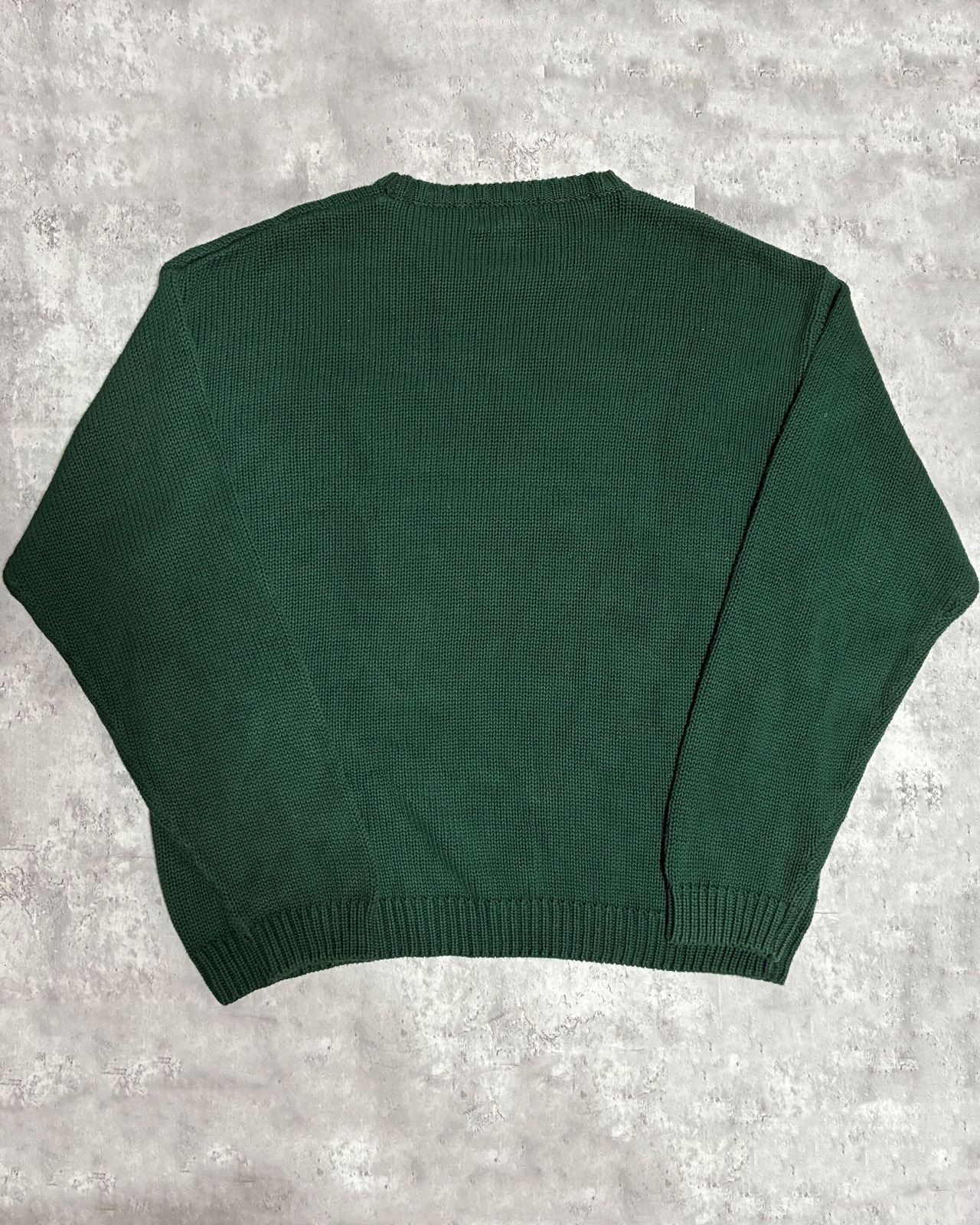 Eddie Bauer(エディバウアー)のダークグリーンコットンセーターです。