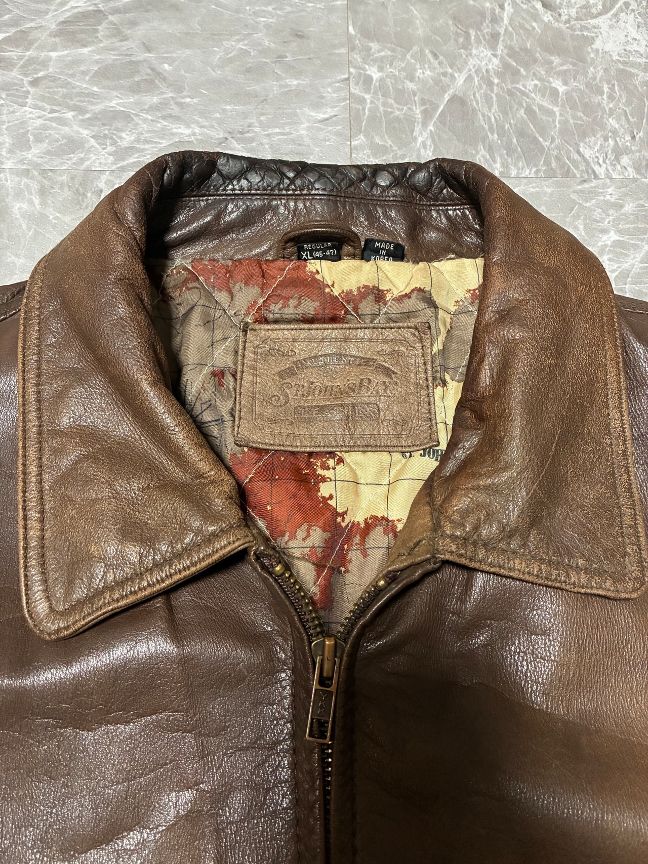 St. John’s Bay レザージャケット 本革 ブラウン L〜XL キルティング裏地 ビッグシルエット セントジョンズベイ