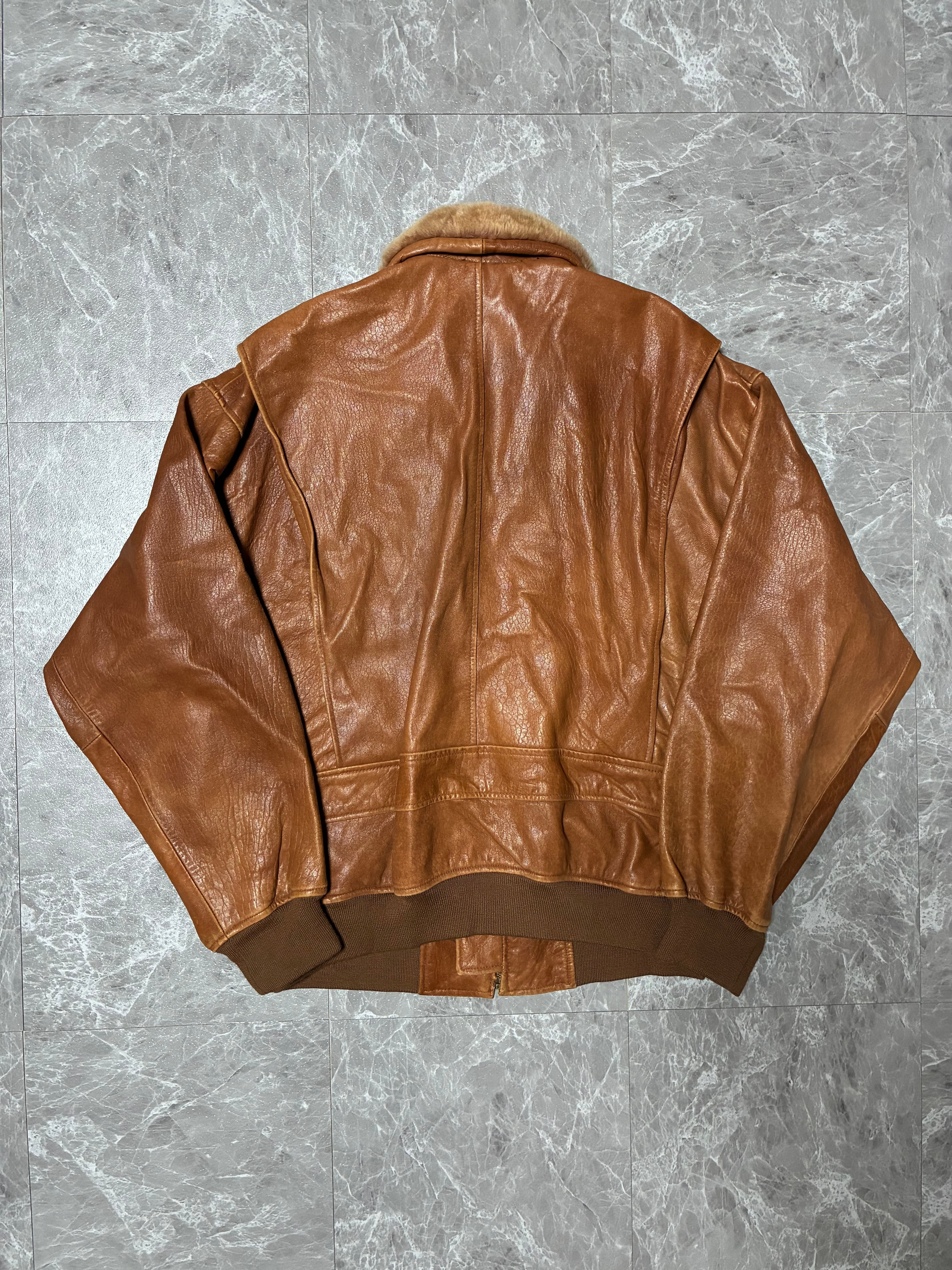 GOLDEN BEAR G-1 Leather Jacket – Brown / Fur Collar / Vintage ゴールデンベア G-1 レザージャケット ブラウン ファー襟 古着(状態考慮) ( GOLDEN BEAR / ゴールデンベア / G-1 / レザージャケット / フライトジャケット / ファー襟 / ブラウン / 古着 / ヴィンテージ / アメカジ / ミリタリー)
