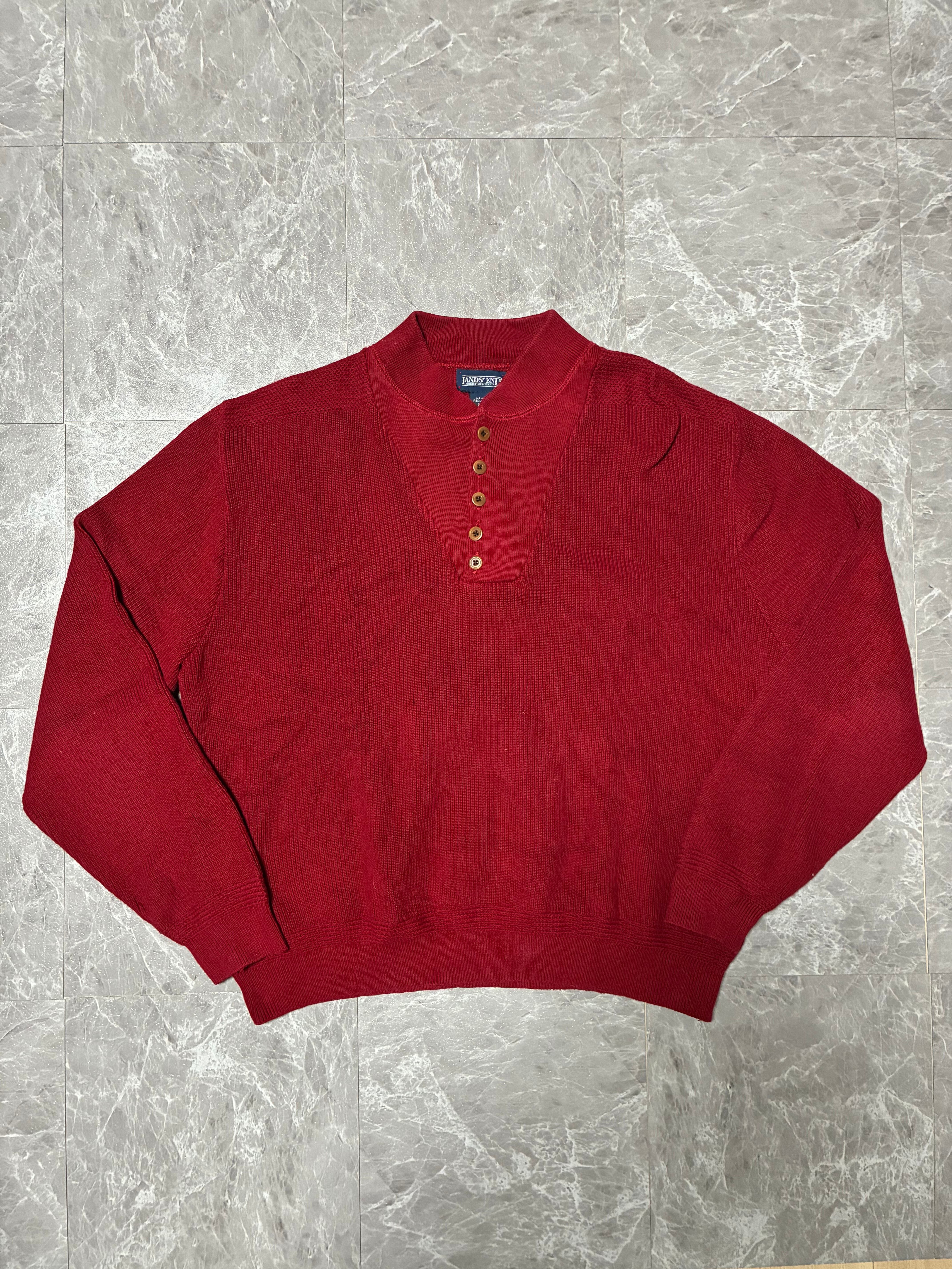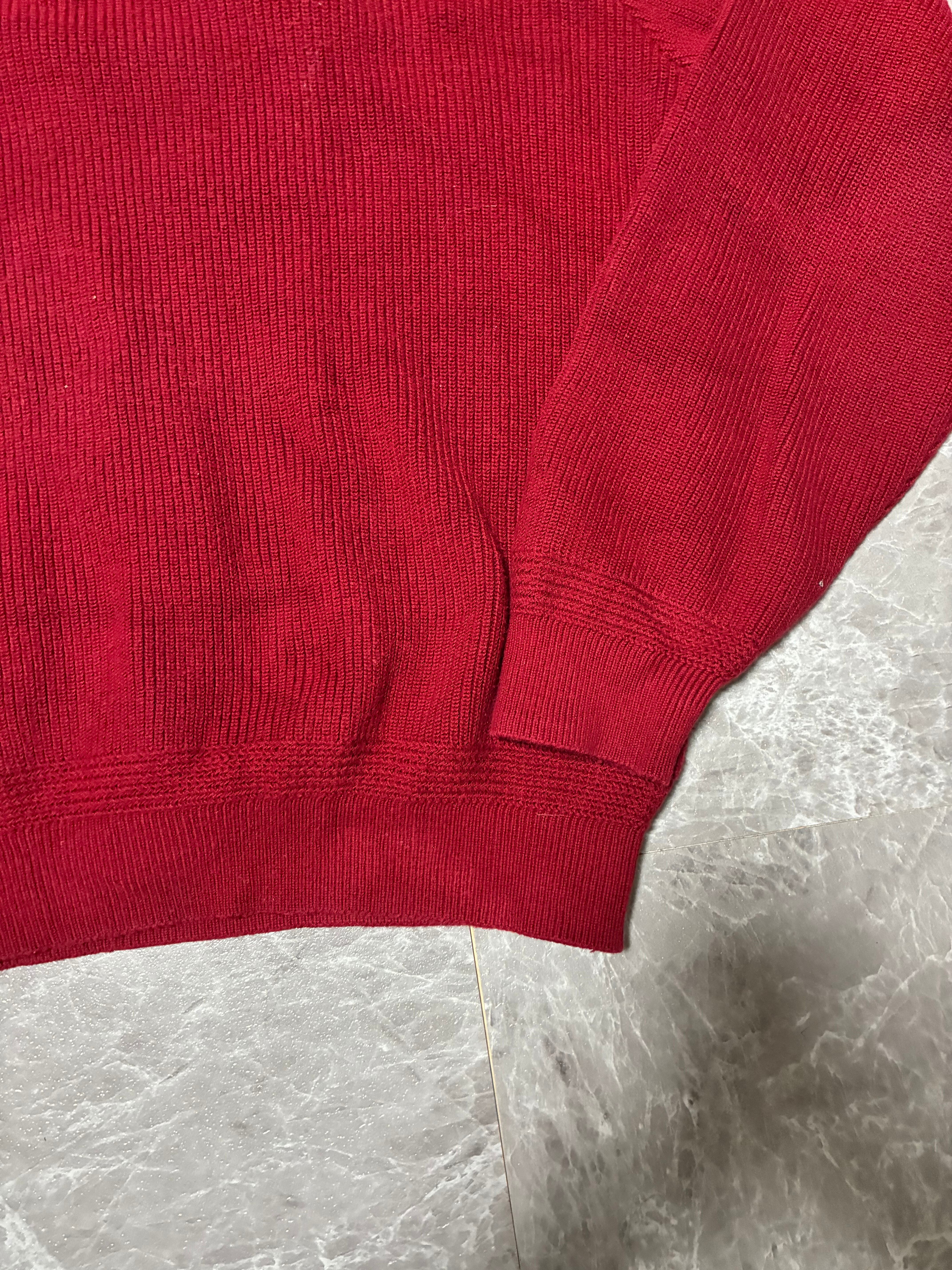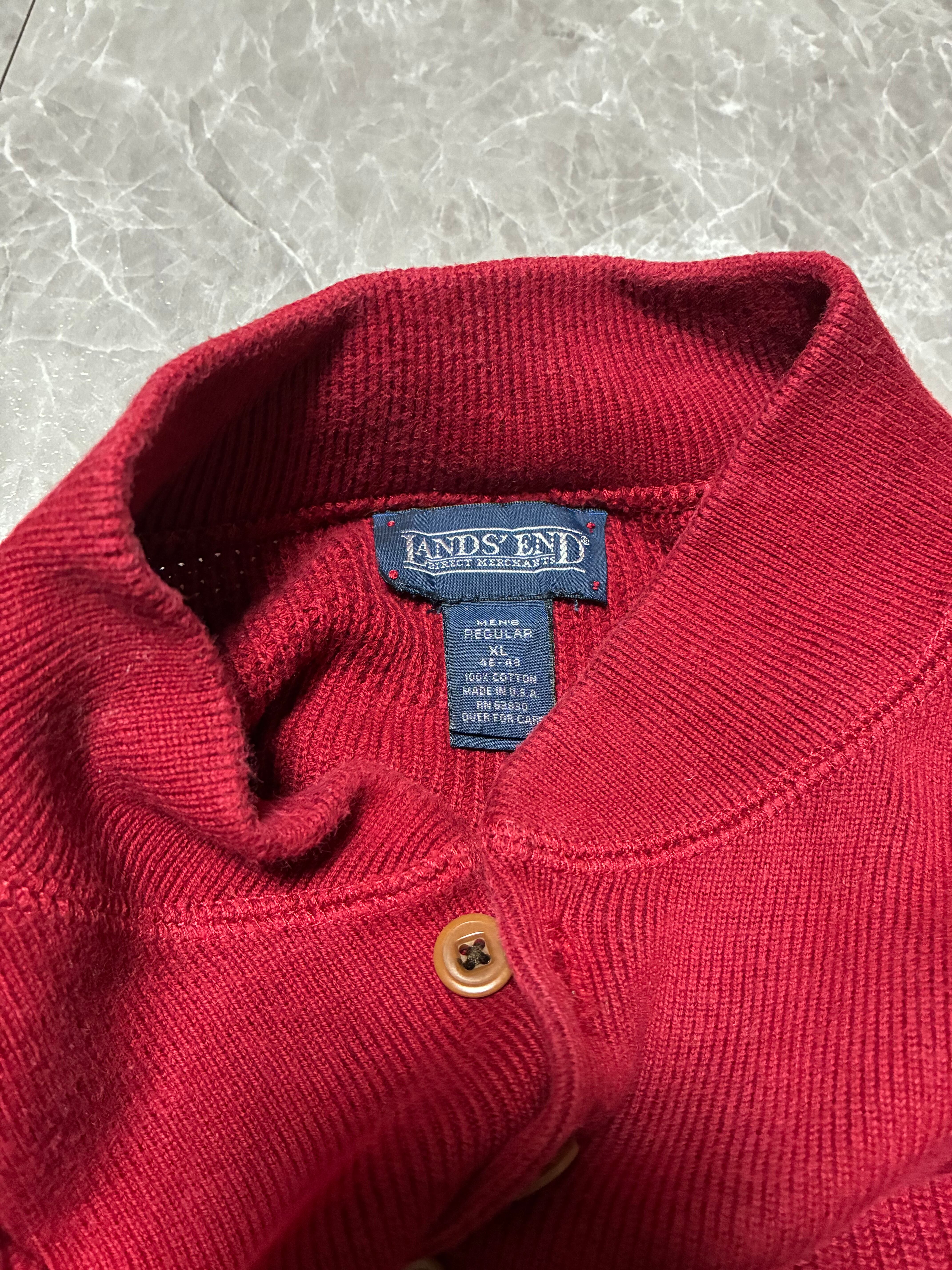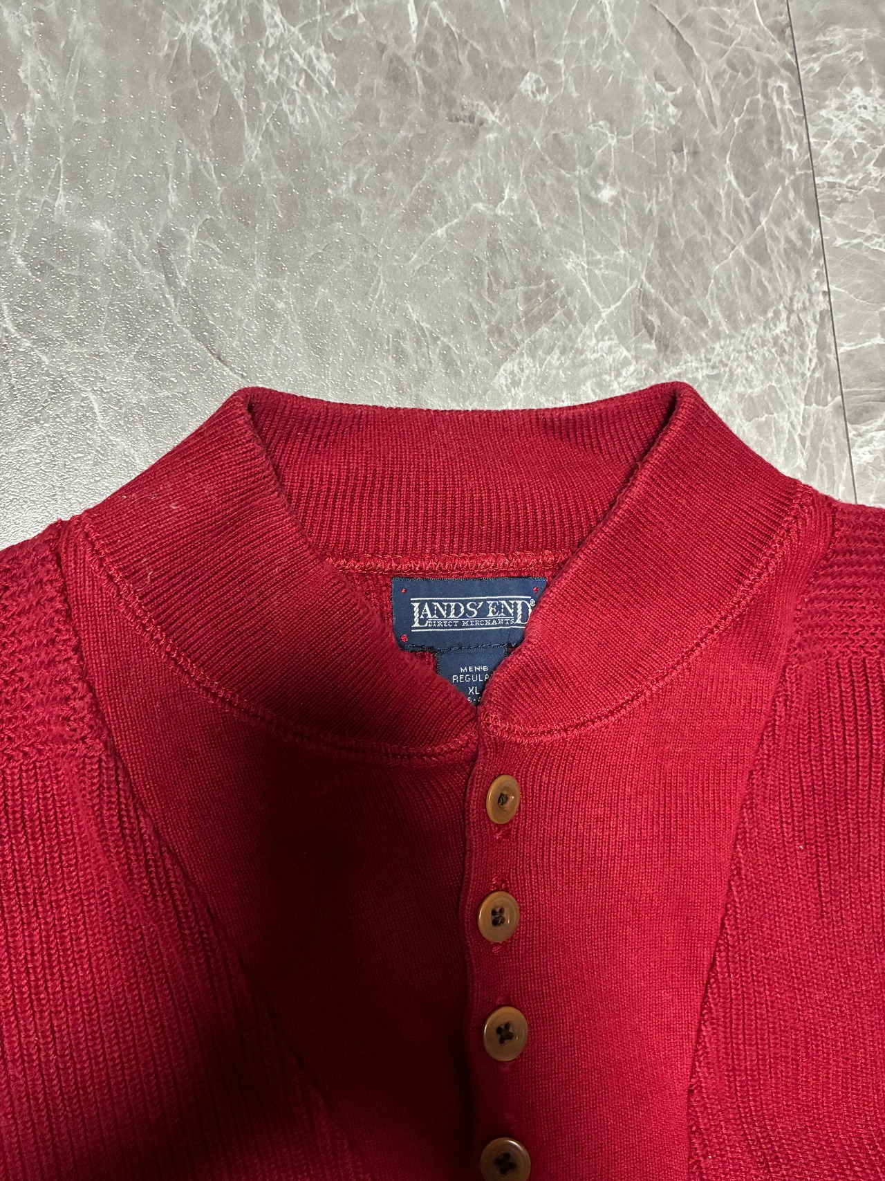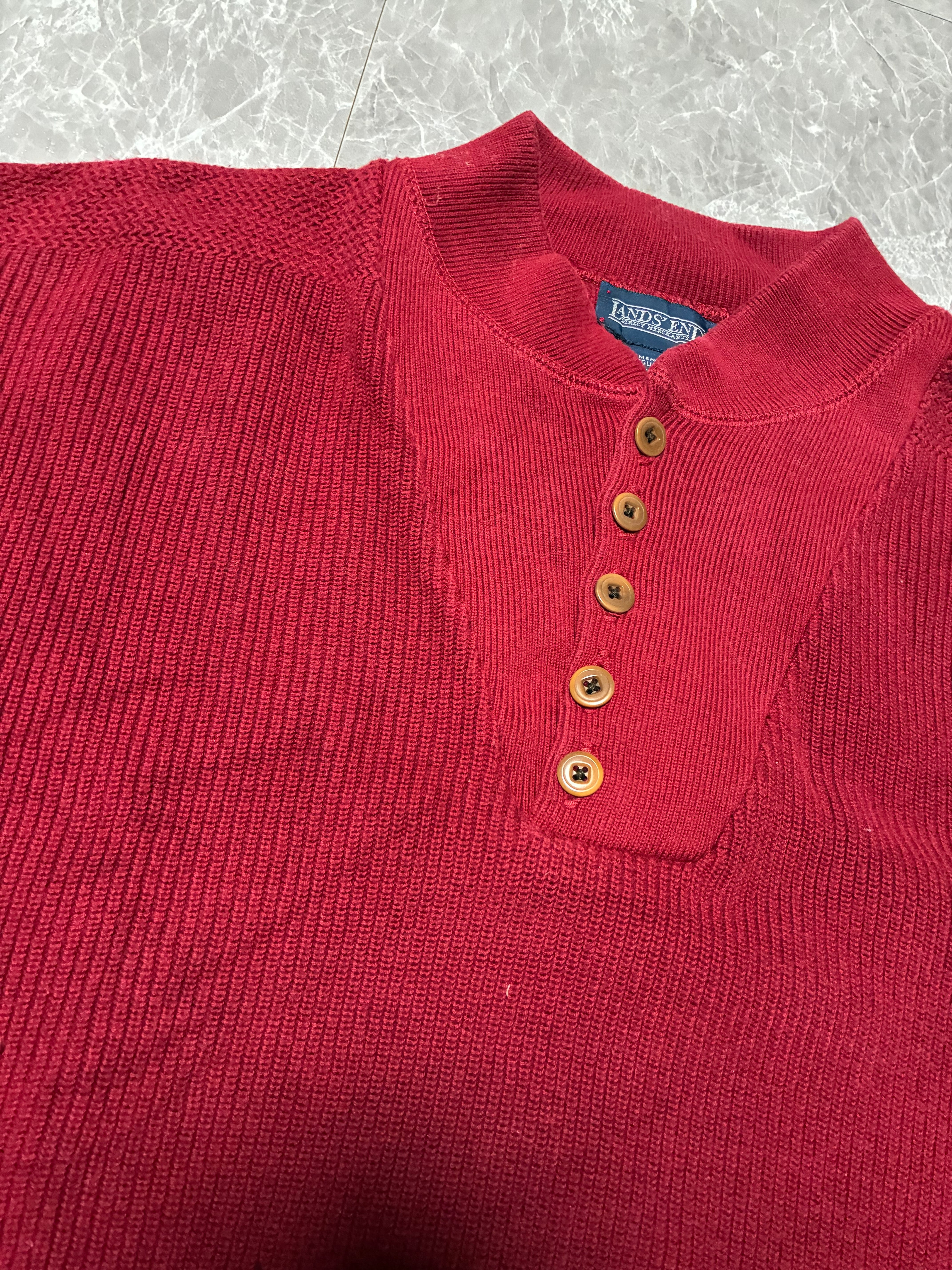 Lands’ End USA製 ヘンリーネック コットンニット – レッド / L〜XL相当 / 90s–00s ランズエンド ニット セーター 古着 ( Lands’ End / ランズエンド / USA製 / ヘンリーネック / コットンニット / 赤 / レッド / ニットセーター / 90s / 00s / 古着 / アメカジ / トラッド)