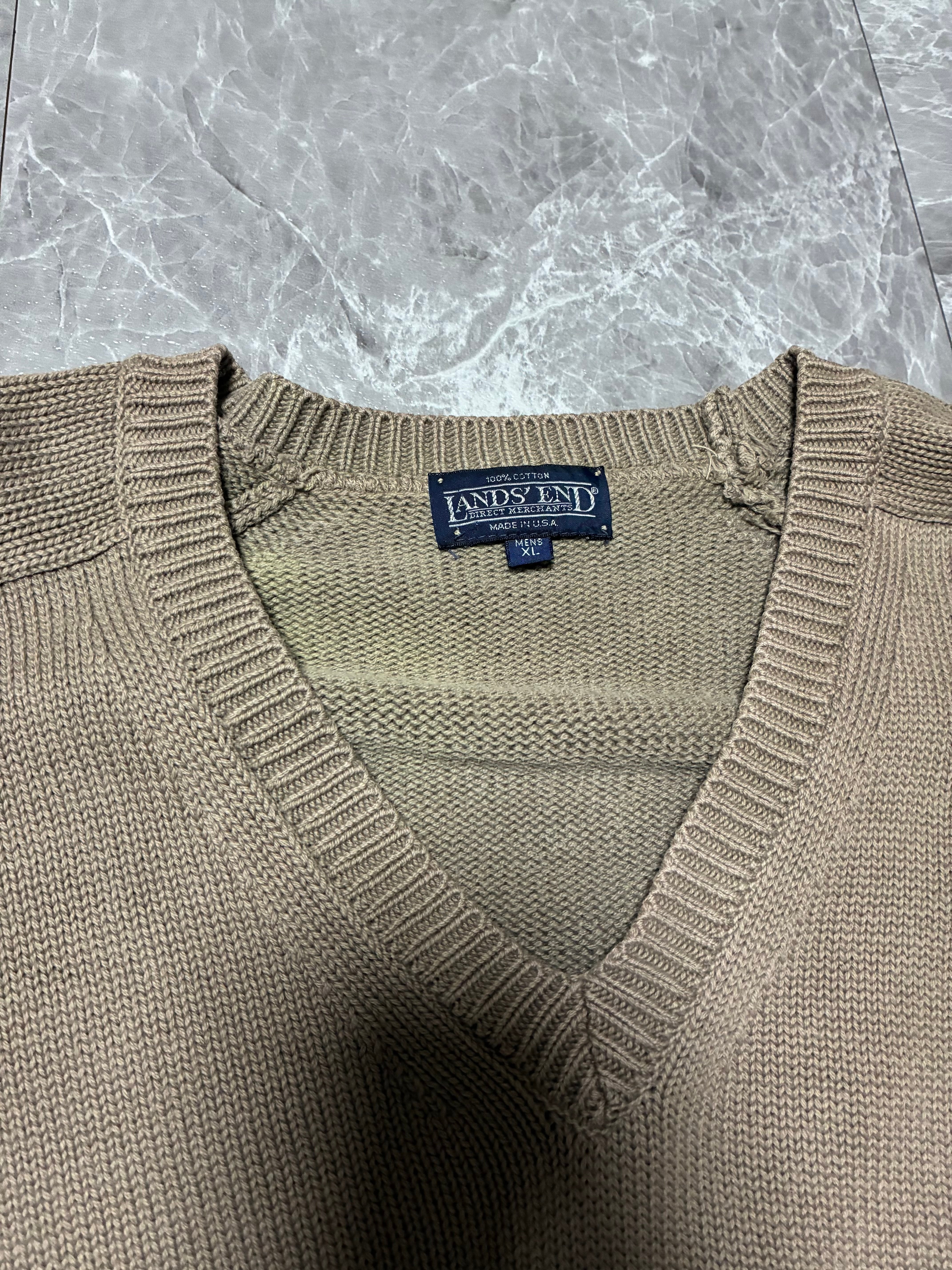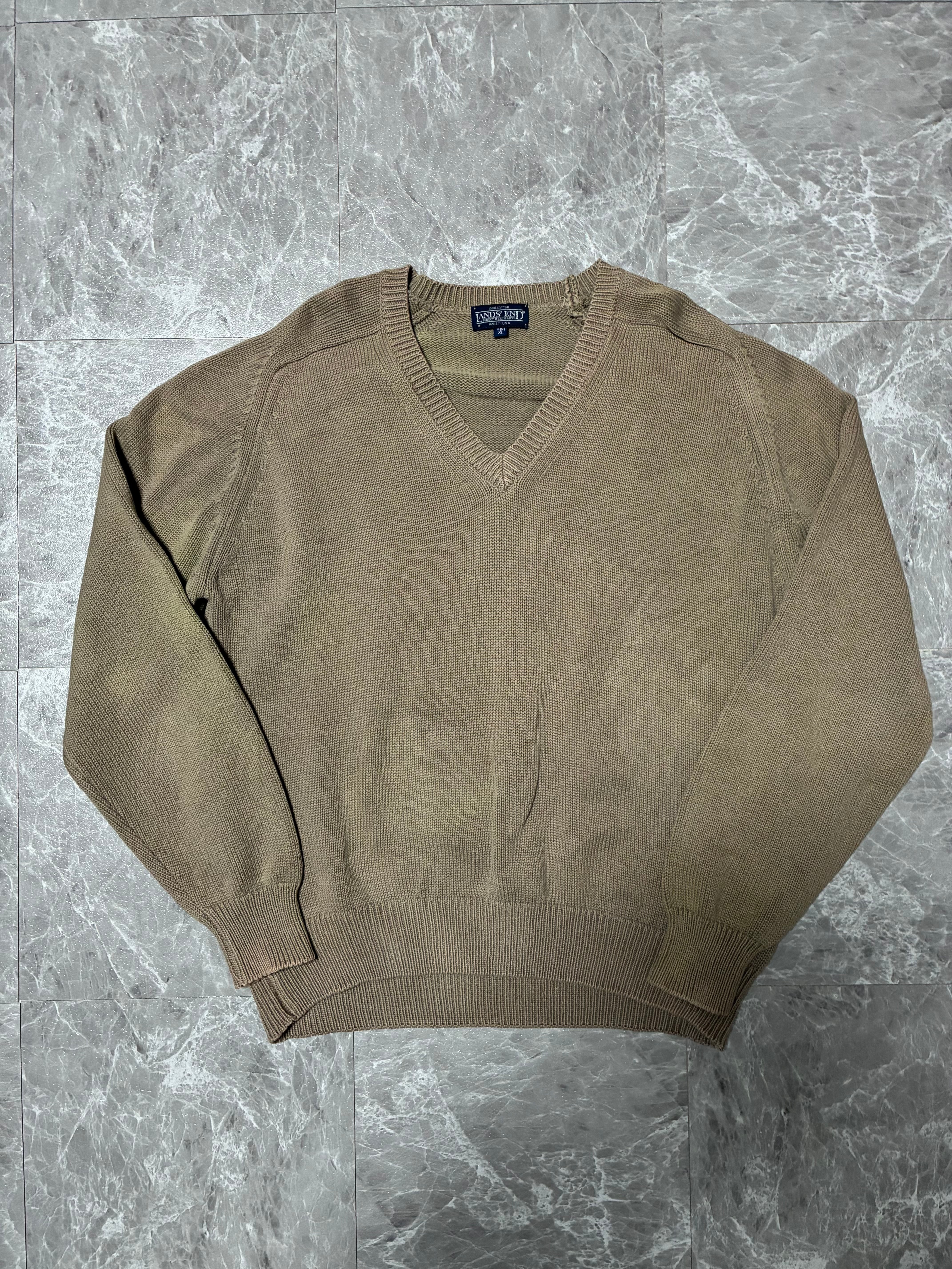 Lands’ End Drifter Vネック コットンニット – ベージュ / USA製 / L〜XL相当 ランズエンド ドリフター ニット セーター 古着 (Lands’ End / ランズエンド / Drifter / ドリフター / USA製 / Vネック / コットンニット / ベージュ / ニットセーター / 90s / ヴィンテージ / 古着 / トラッド / アメカジ)