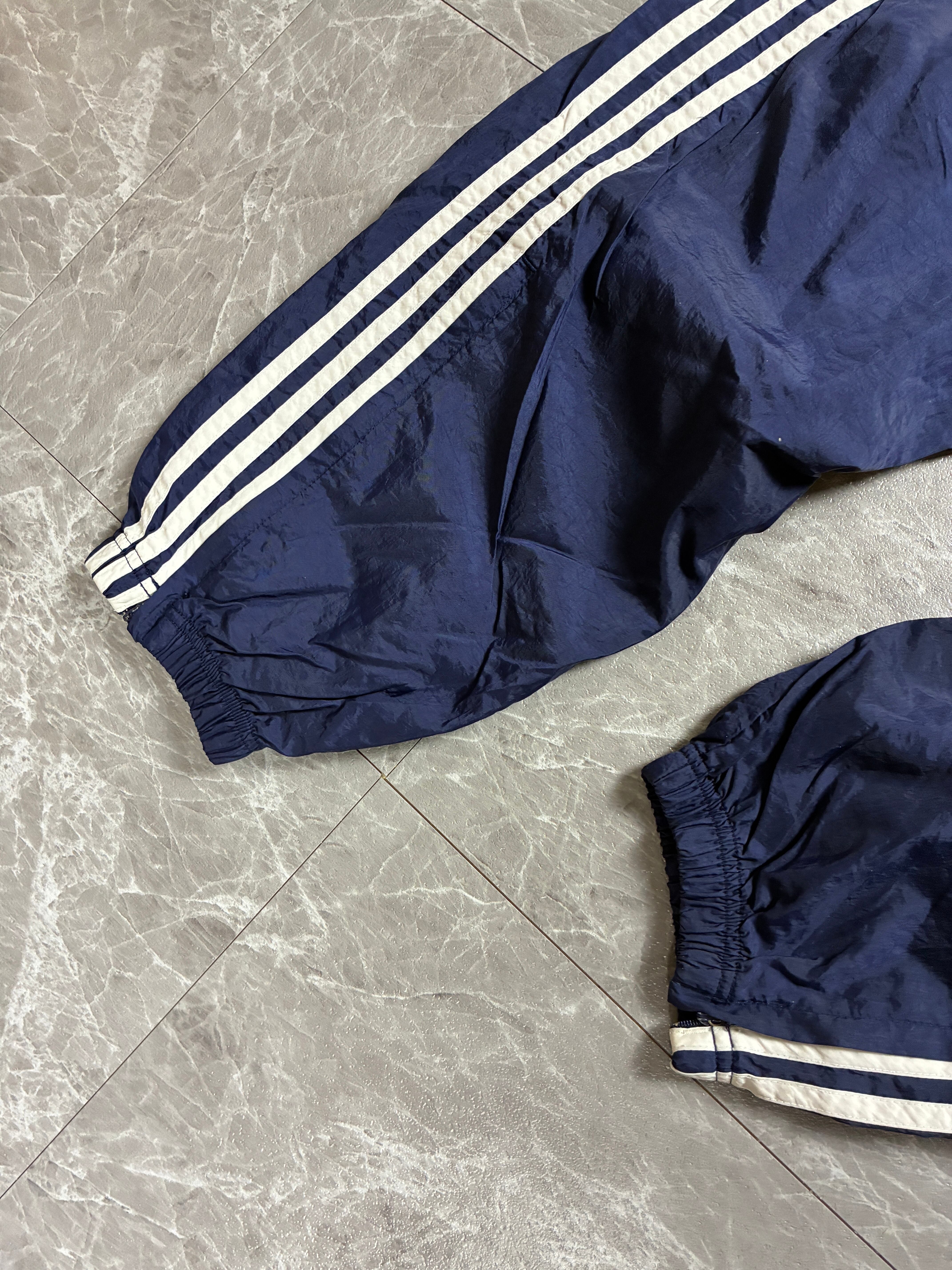 90s adidas ナイロントラックパンツ ネイビー L アディダス バギー 3ライン Y2K ストリート 古着