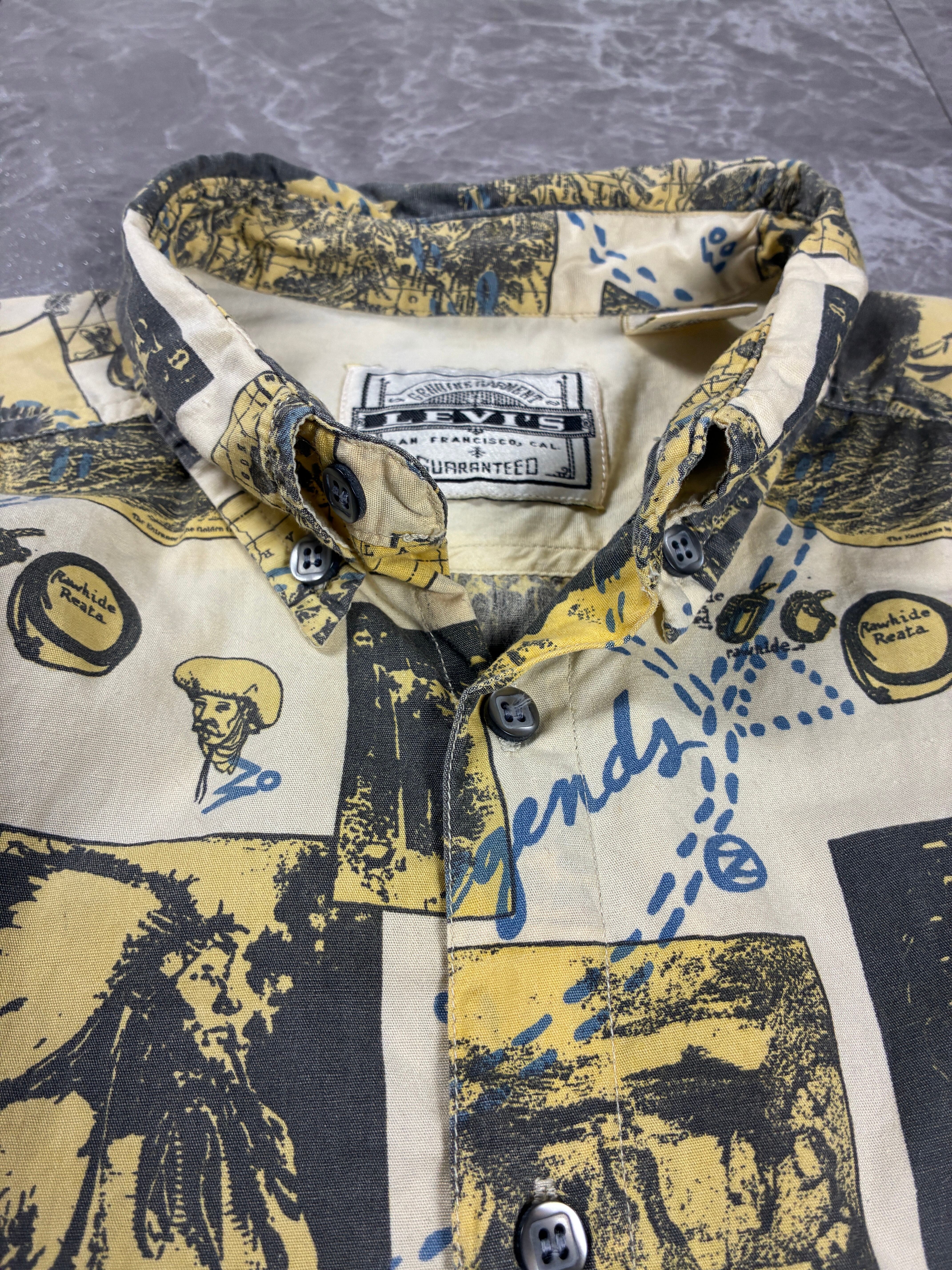 Levi’s 90s レア M相当 総柄 プリントシャツ リーバイス イエロー アメカジ 古着