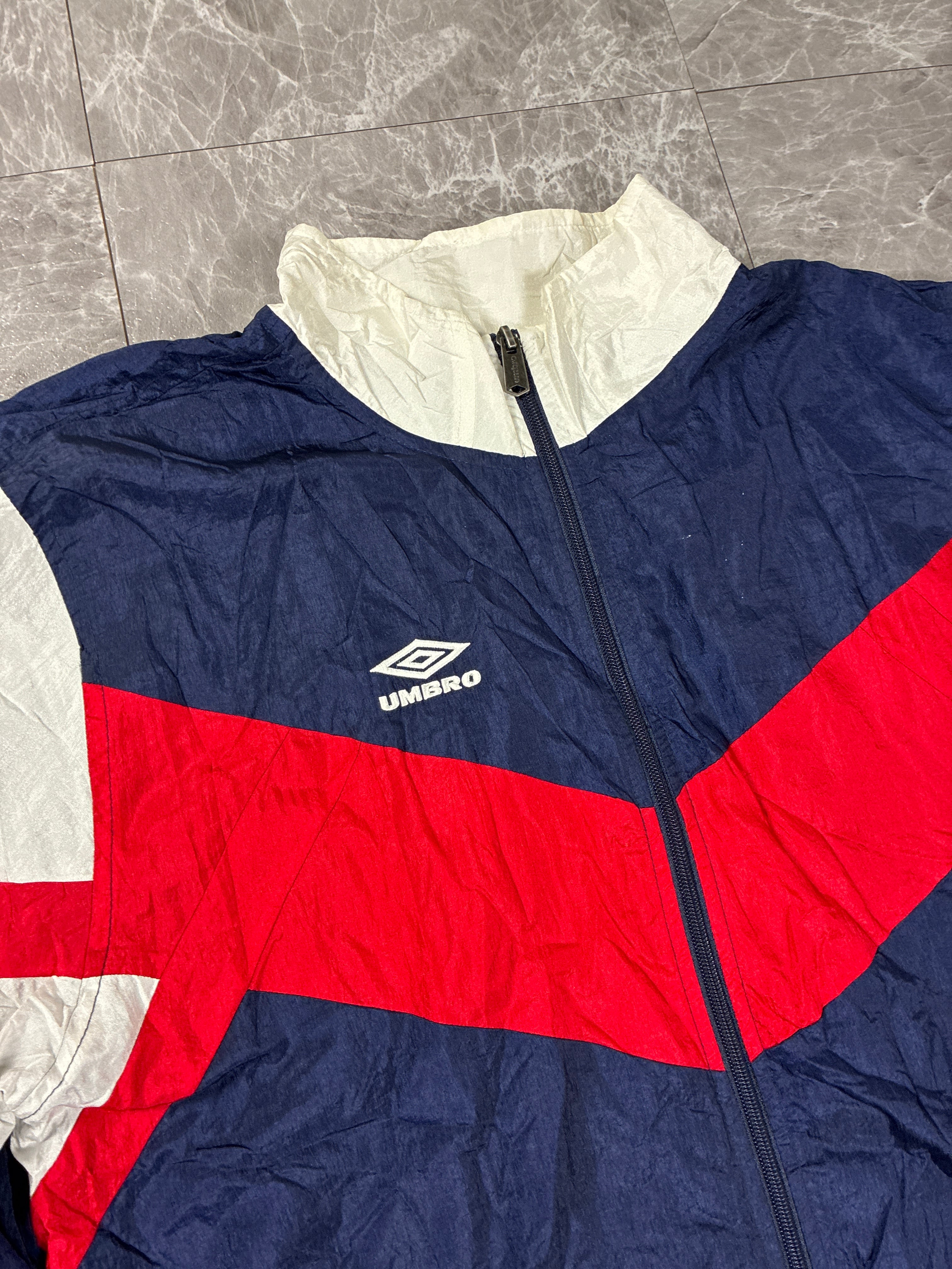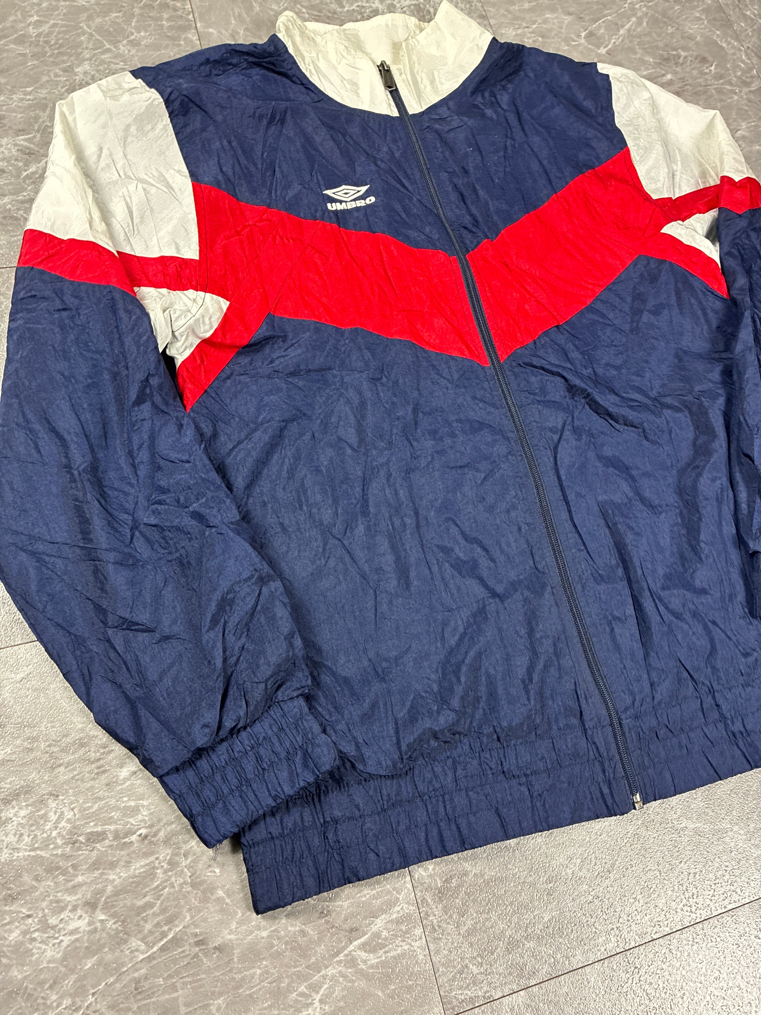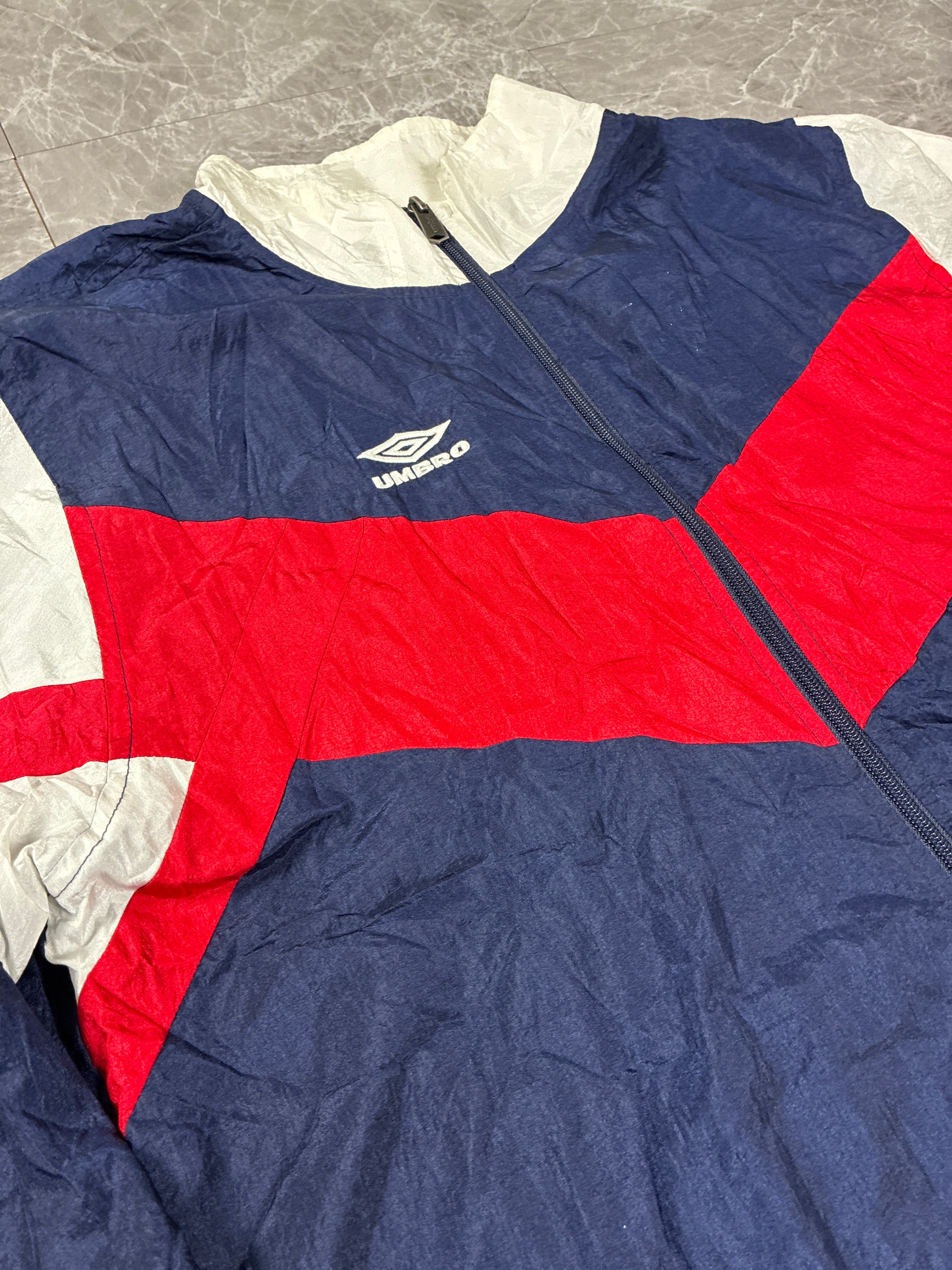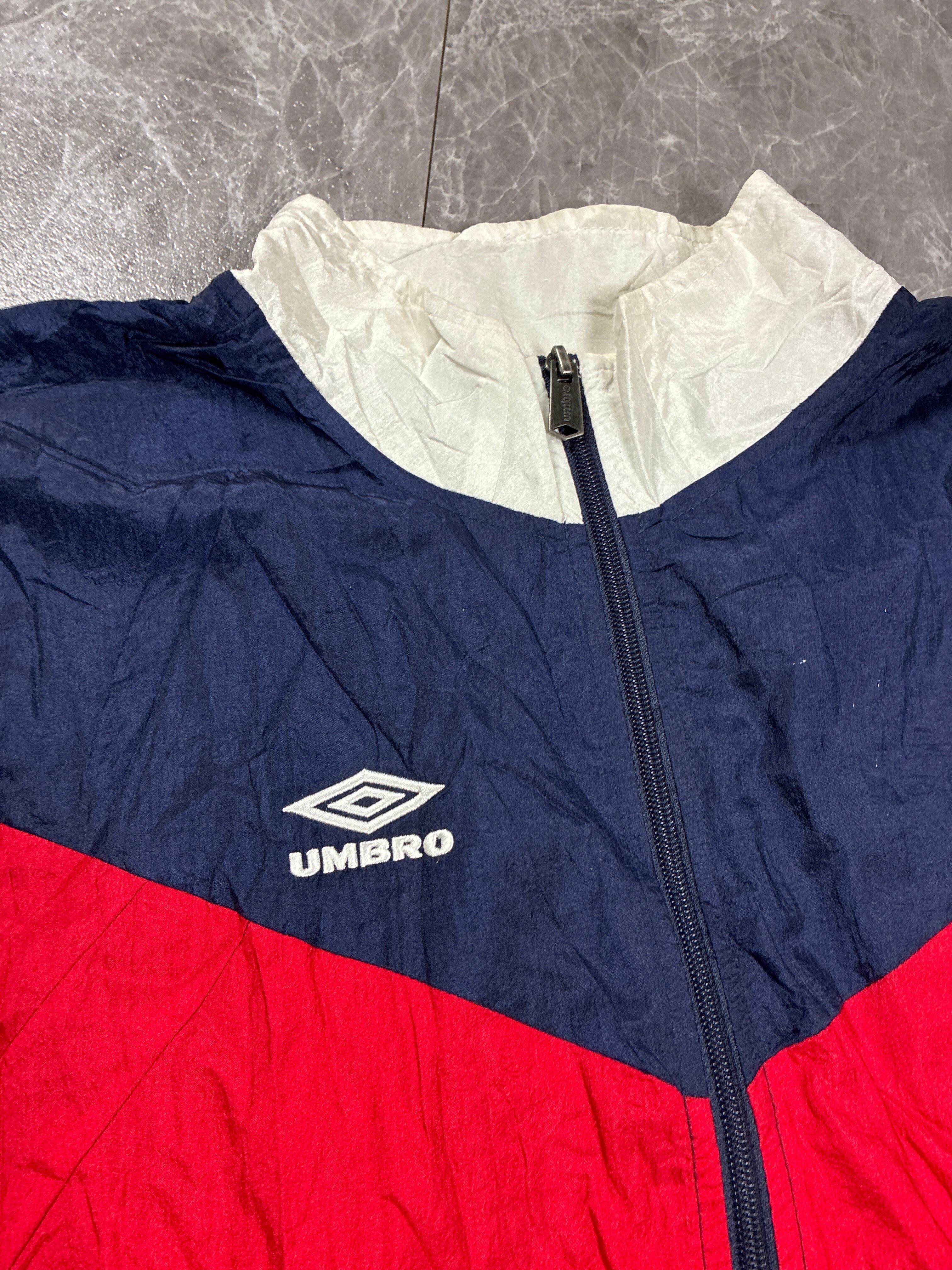 UMBRO ナイロンジャケット L-XL相当ネイビー レッド 90s 00s ジップアップ スポーツ Y2K ブロークコア 古着