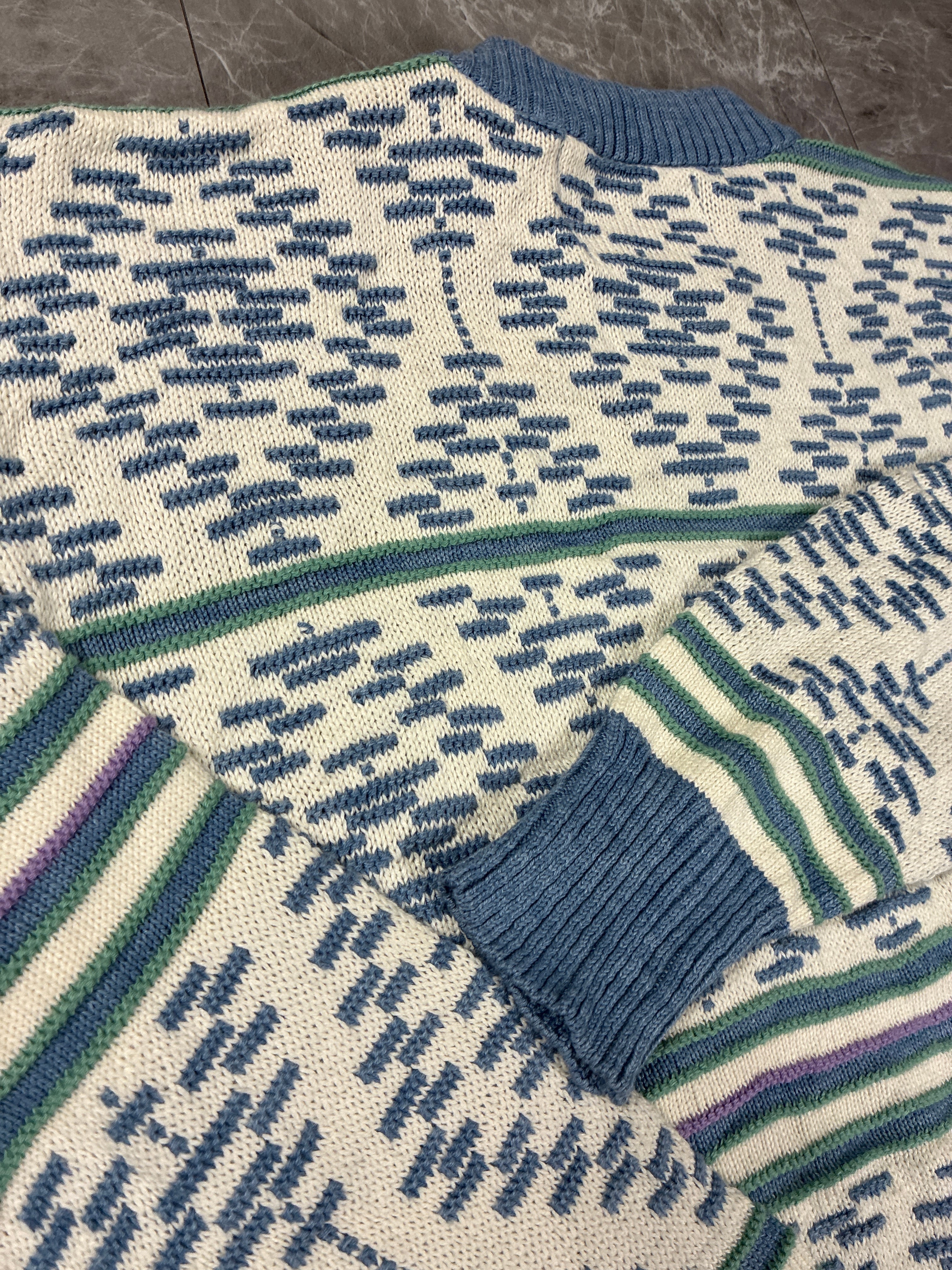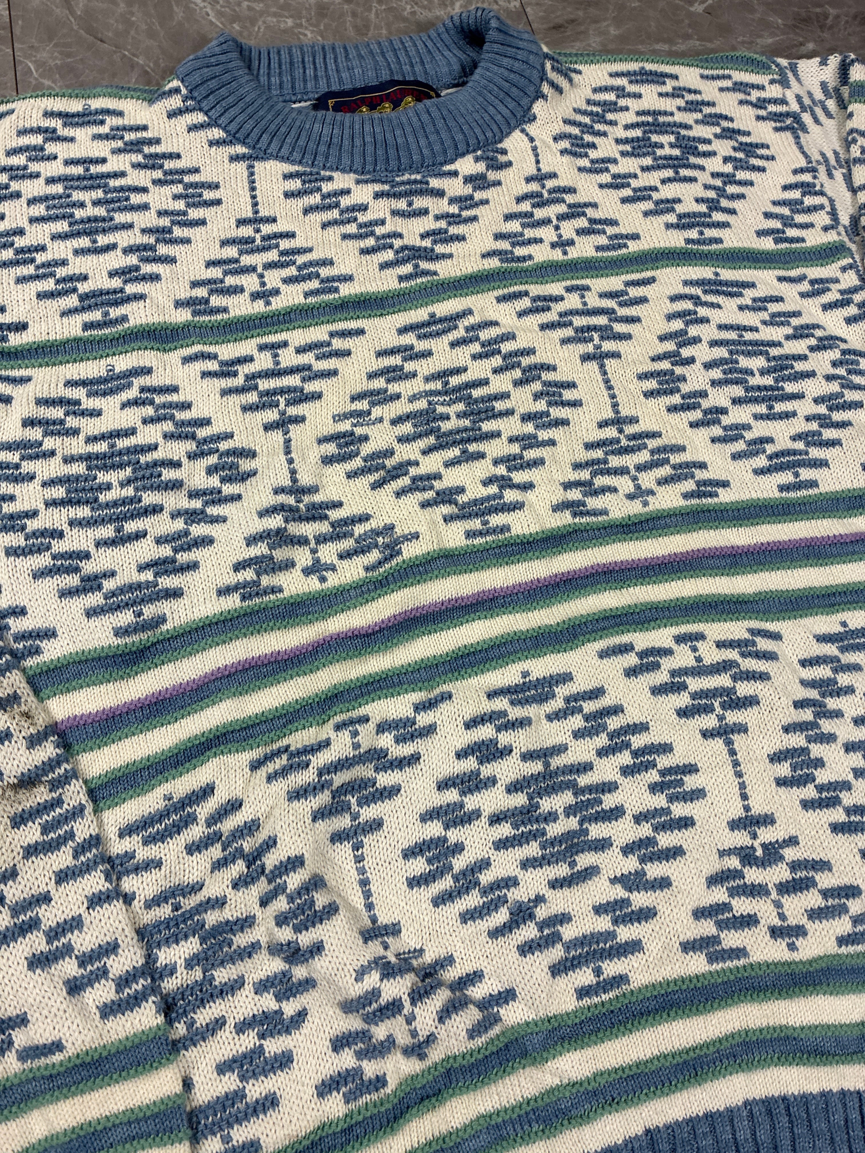 90年代頃の USA製 ラルフローレン チャップスノルディック調(フェアアイル風)幾何学柄クルーネックニットです。