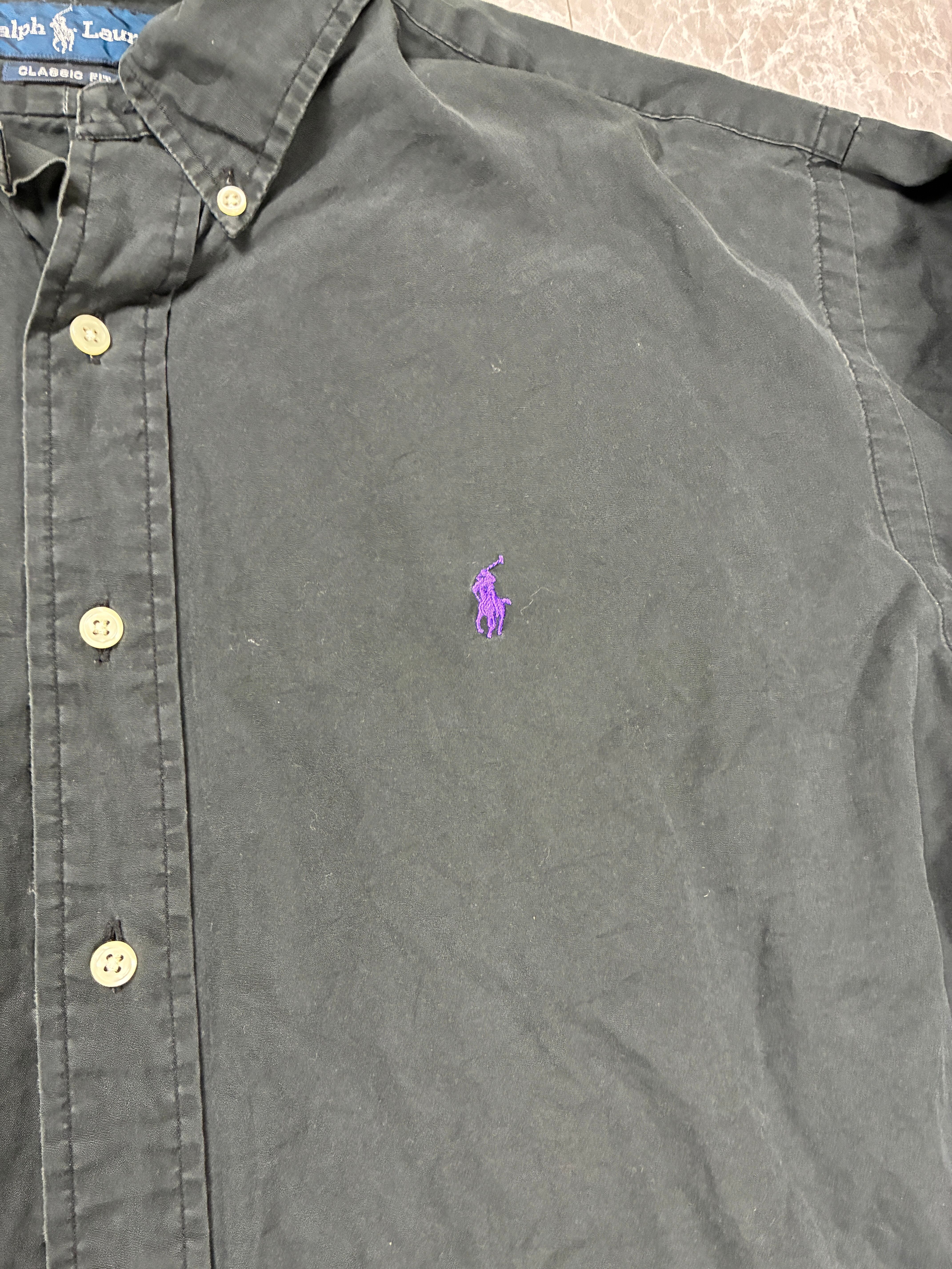 Ralph Lauren クラシックフィット 長袖シャツ ブラック XL相当 ポロラルフローレン 無地シャツ ビッグシルエット 古着