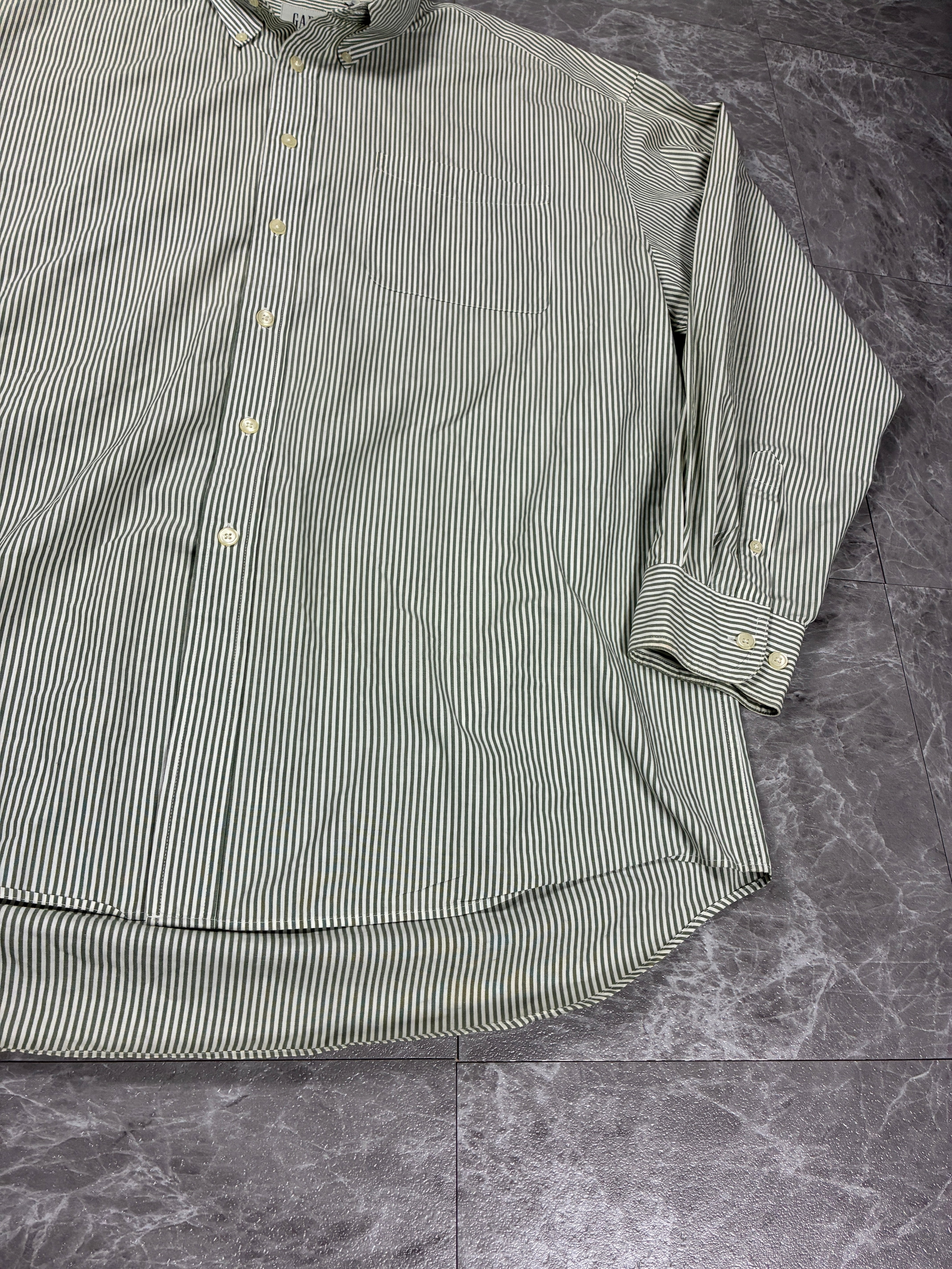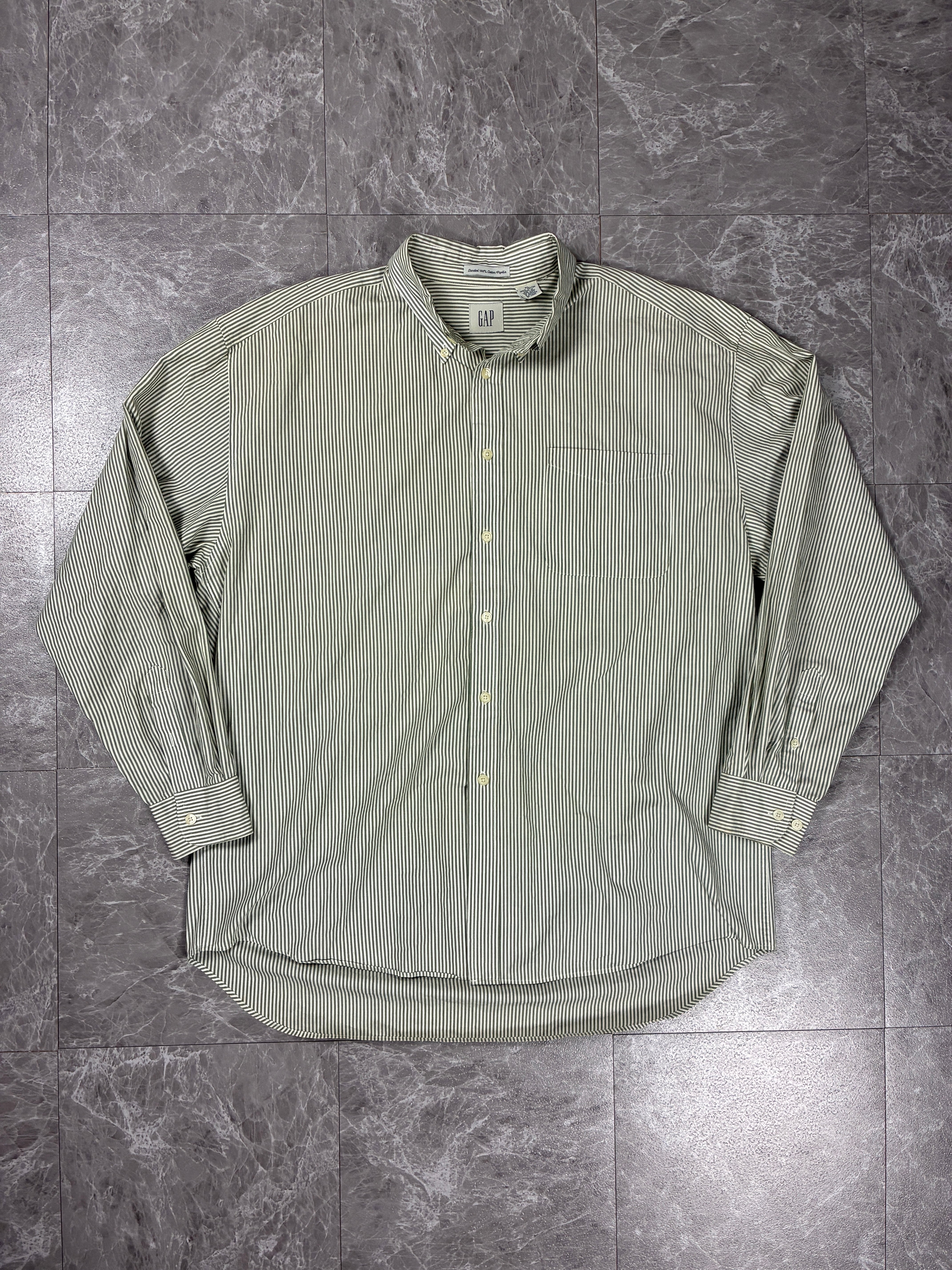 90s OLD GAP ストライプシャツ グリーン XL相当 オールドギャップ コットンシャツ 長袖 オーバーサイズ 緑 古着
