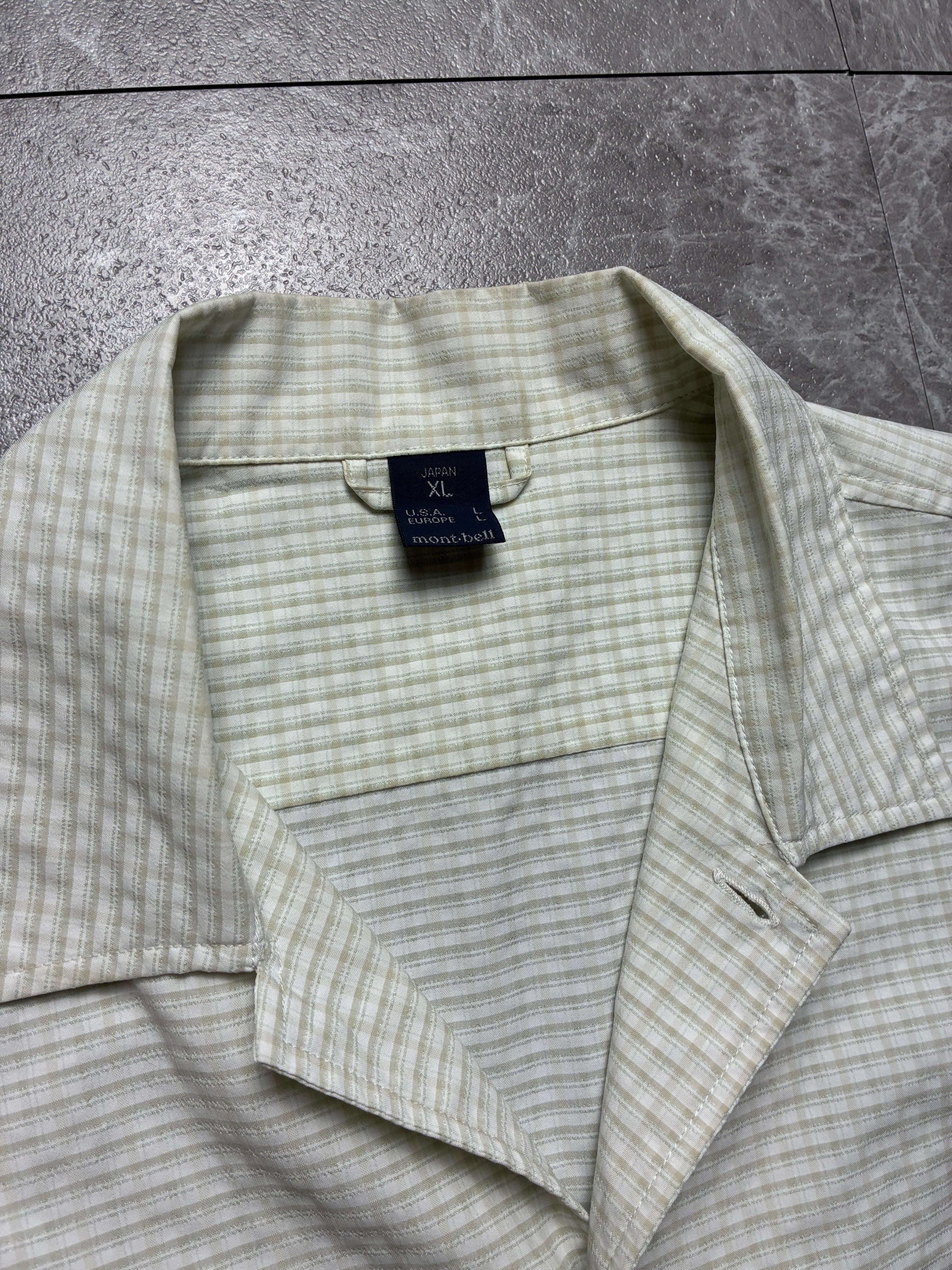 mont-bell XL オープンカラーシャツ ベージュ チェック モンベル 半袖 開襟シャツ テック アウトドア アメカジ 古着