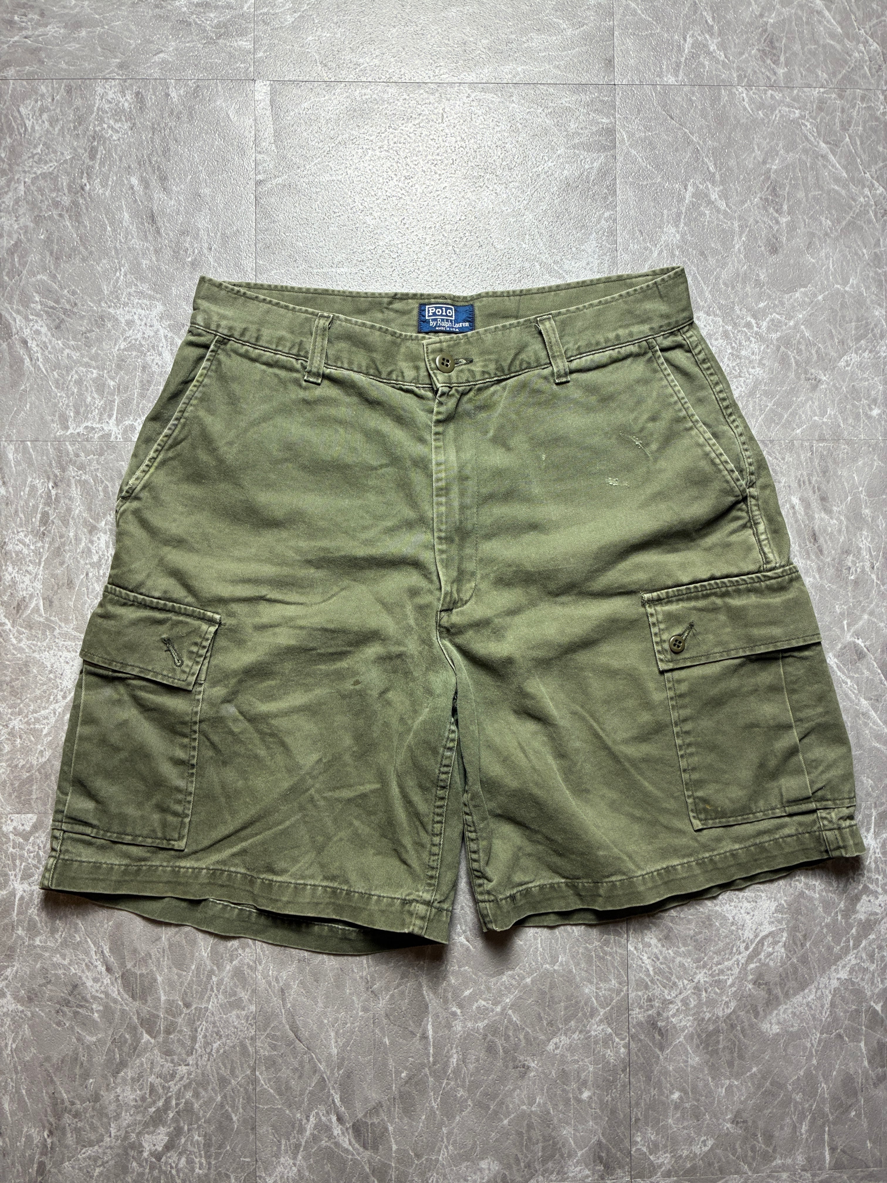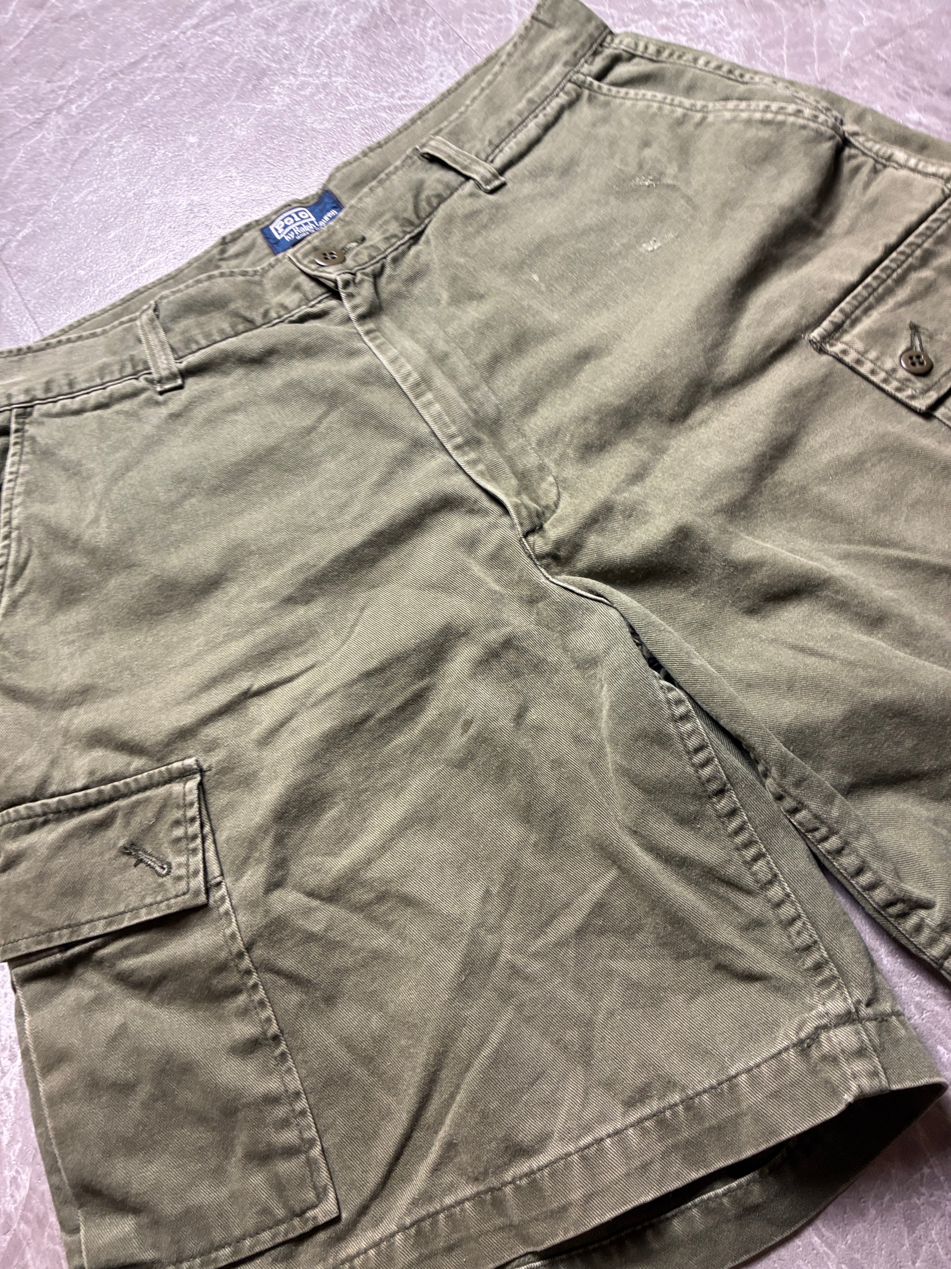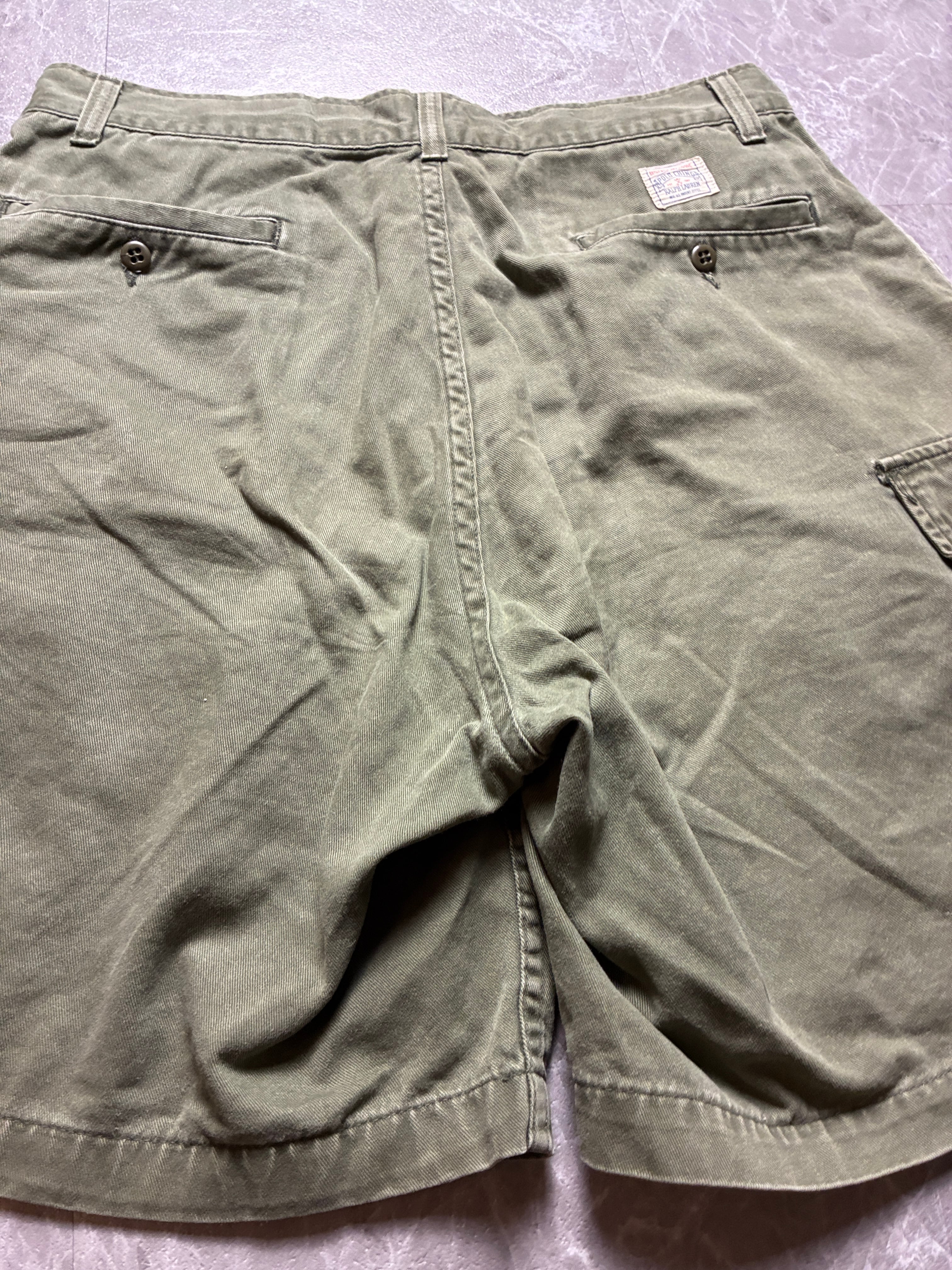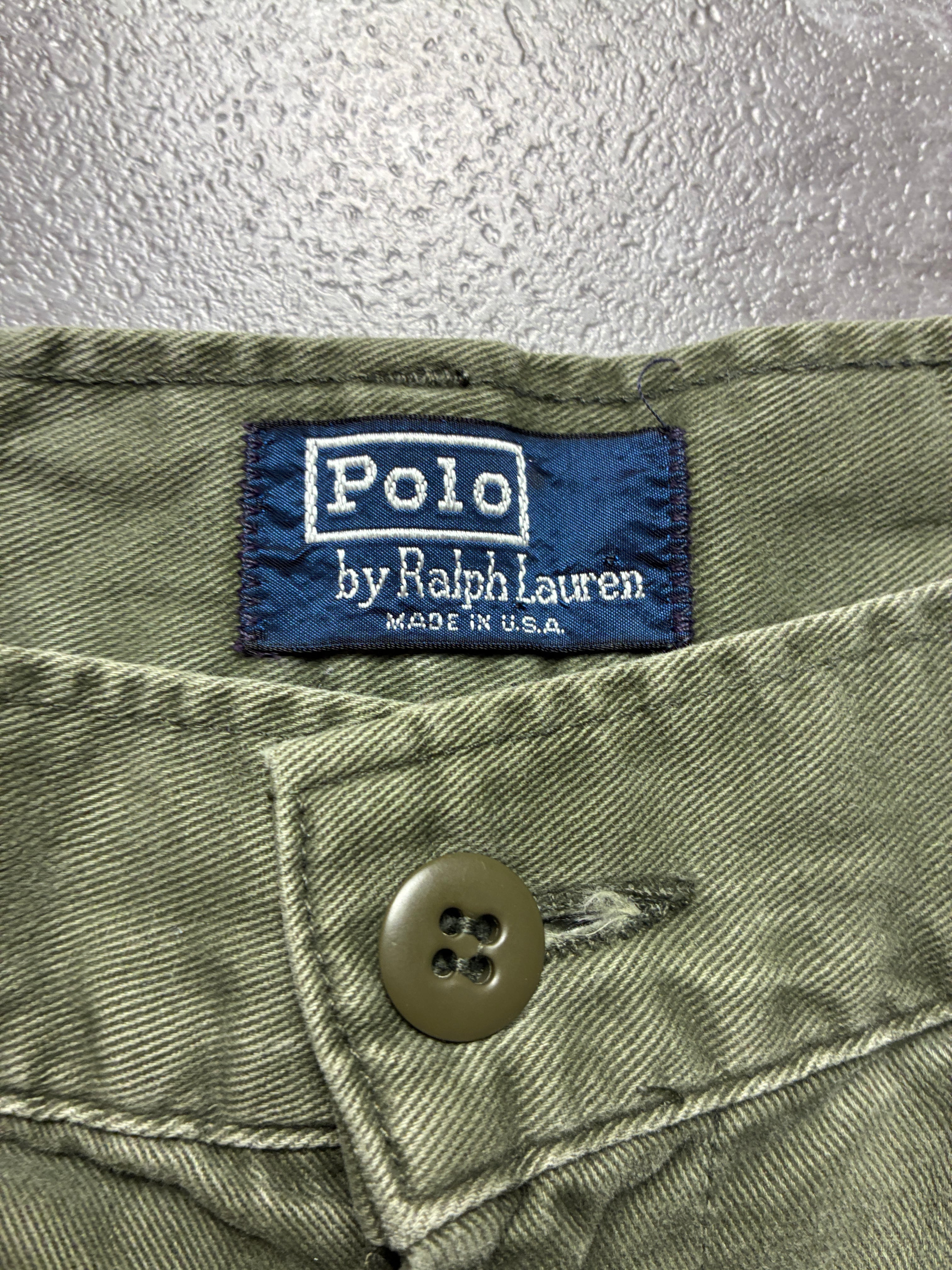 希少 90s USA製 ポロラルフローレン カーゴショーツ W33 カーキ 裾幅34cm 極太バギー アメリカ製 ヴィンテージ ポロチノ 古着