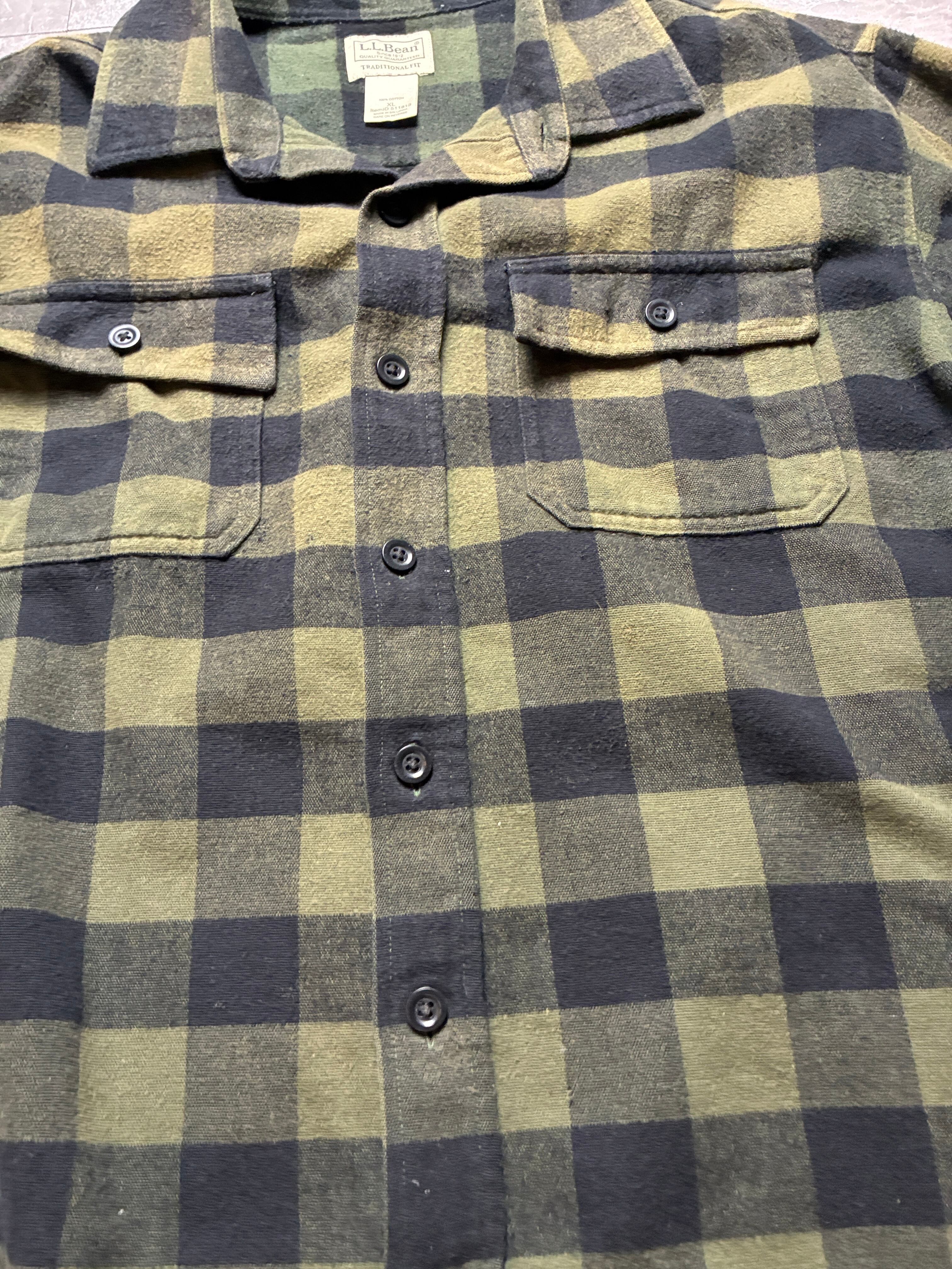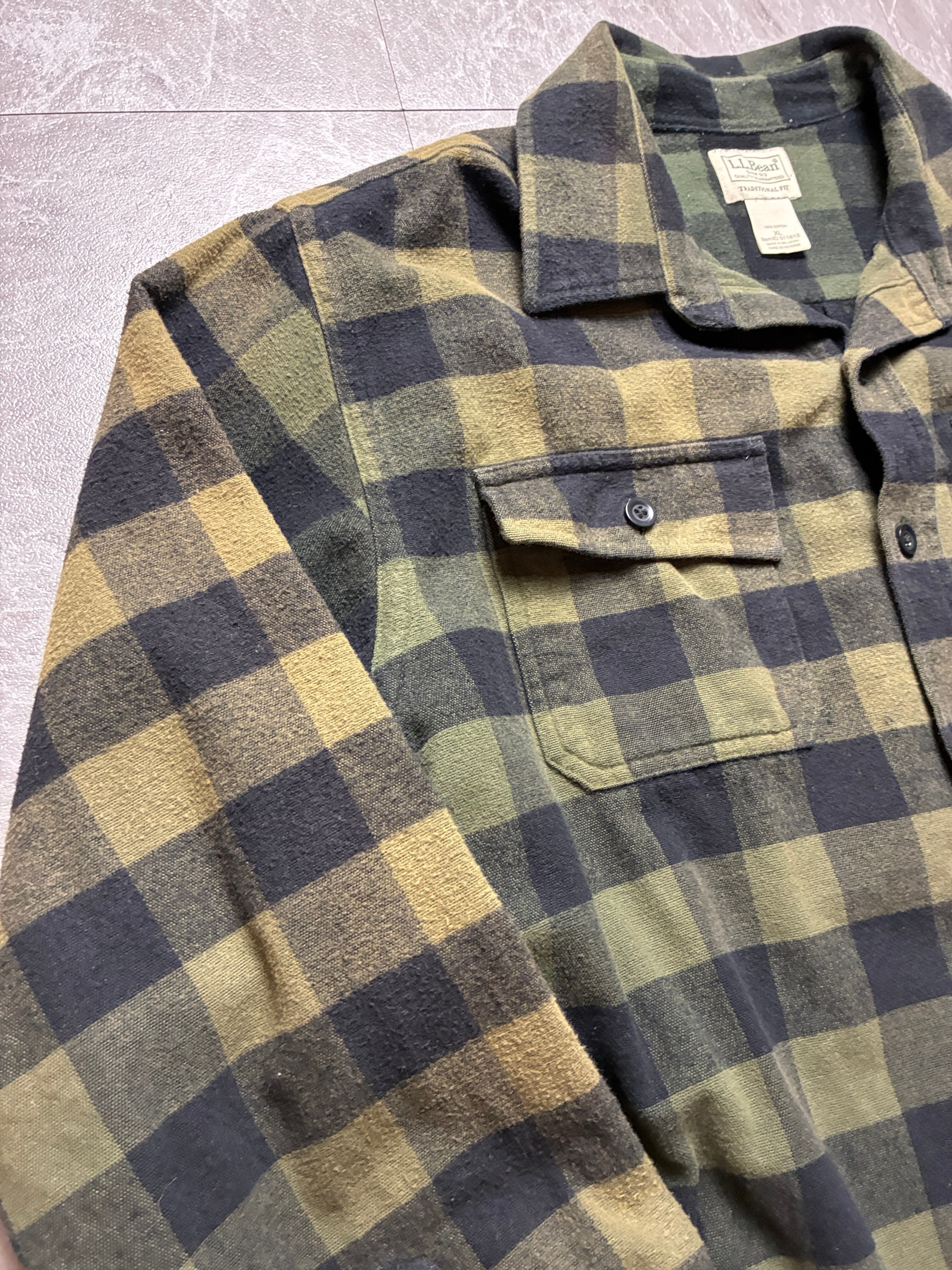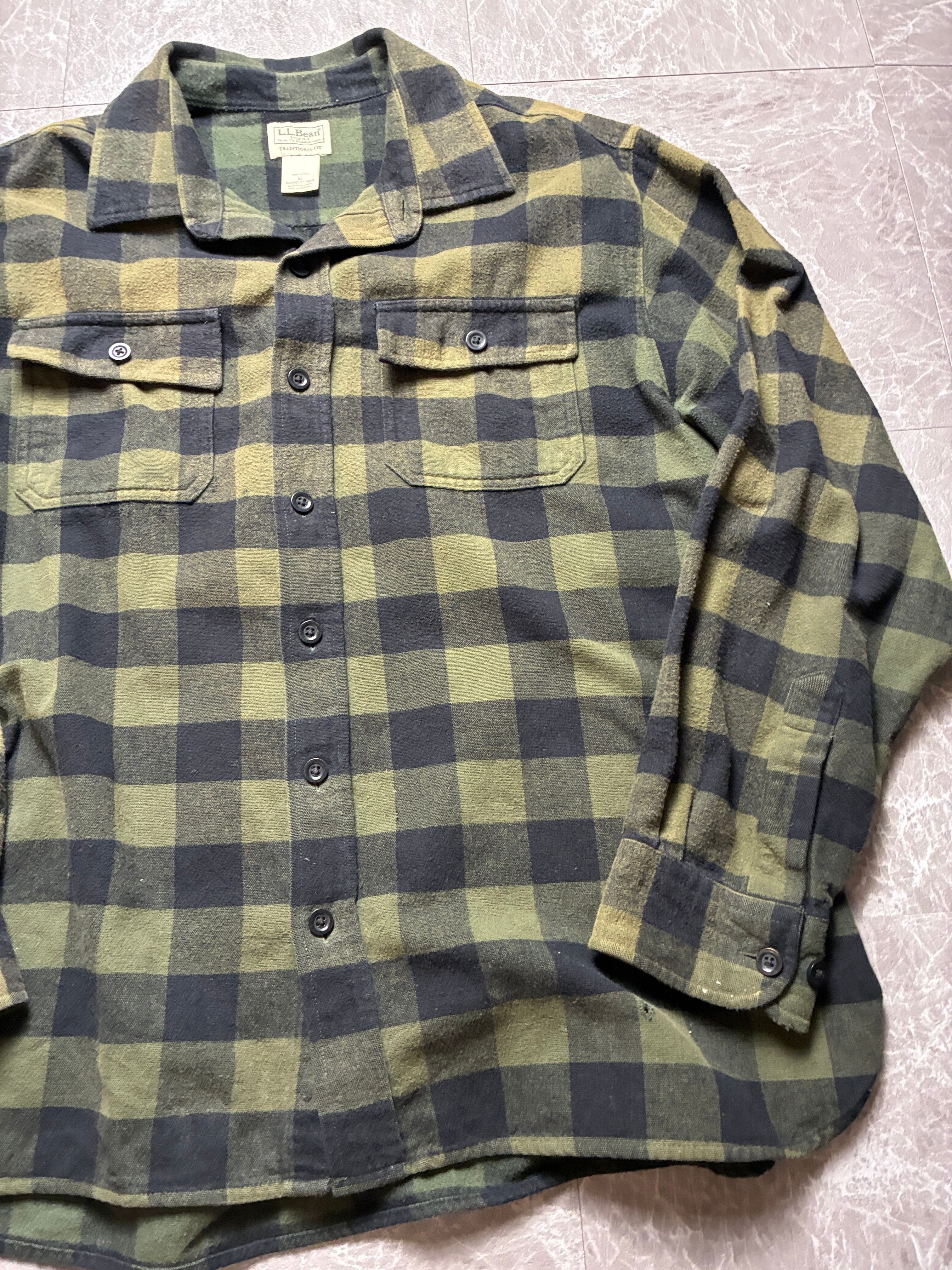 00s L.L.Bean バッファローチェック ネルシャツ XL 緑 黒 身幅63cm エルエルビーン ワイド フェード ビンテージ アメカジ US古着