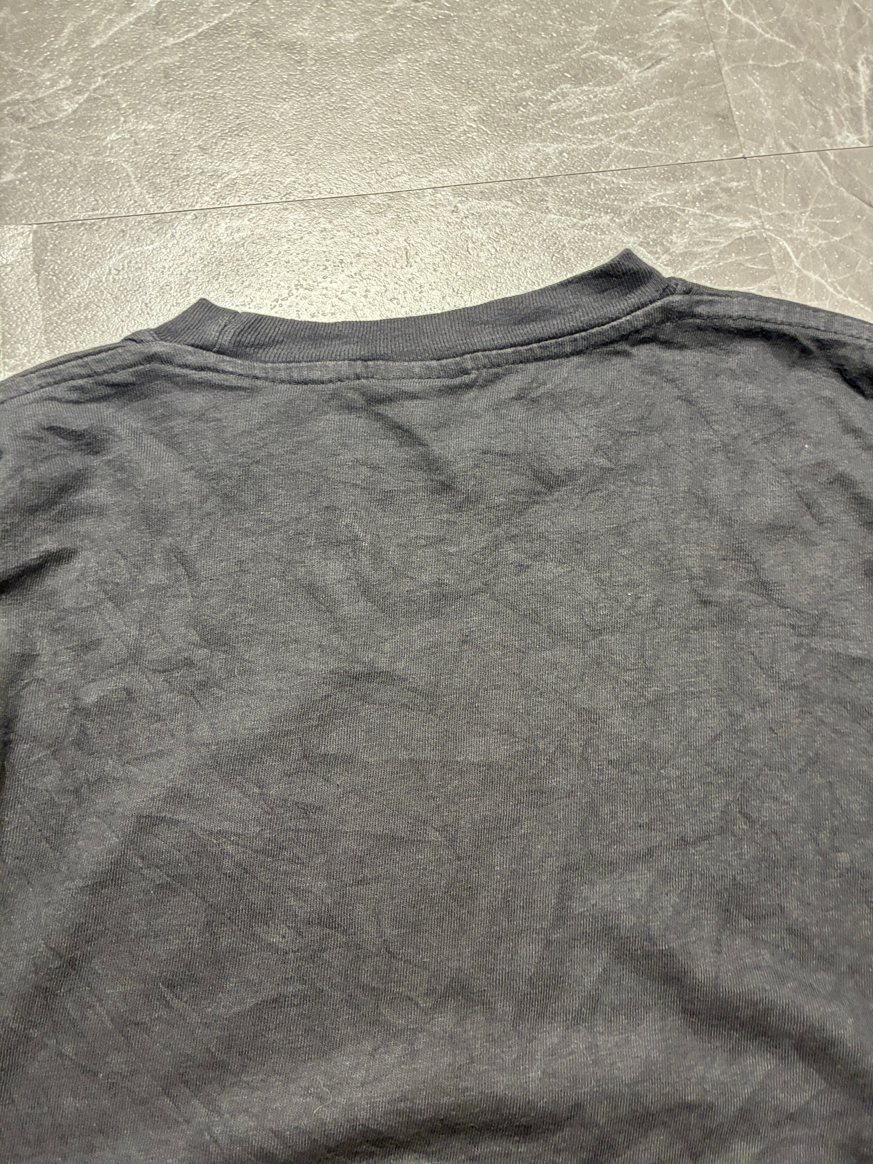 生地の厚みがしっかり残っており、首元の伸びや目立つダメージもありません。一着で主役を張れるのはもちろん、シャツやジャケットのインナーからプリズムロゴを覗かせるレイヤードスタイルも圧巻です。